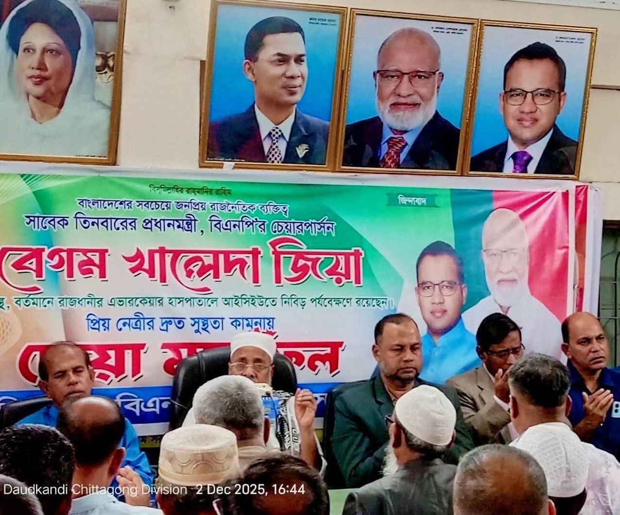 দাউদকান্দিতে খালেদা জিয়ার রোগ মুক্তি কামনায় দোয়া মাহফিল