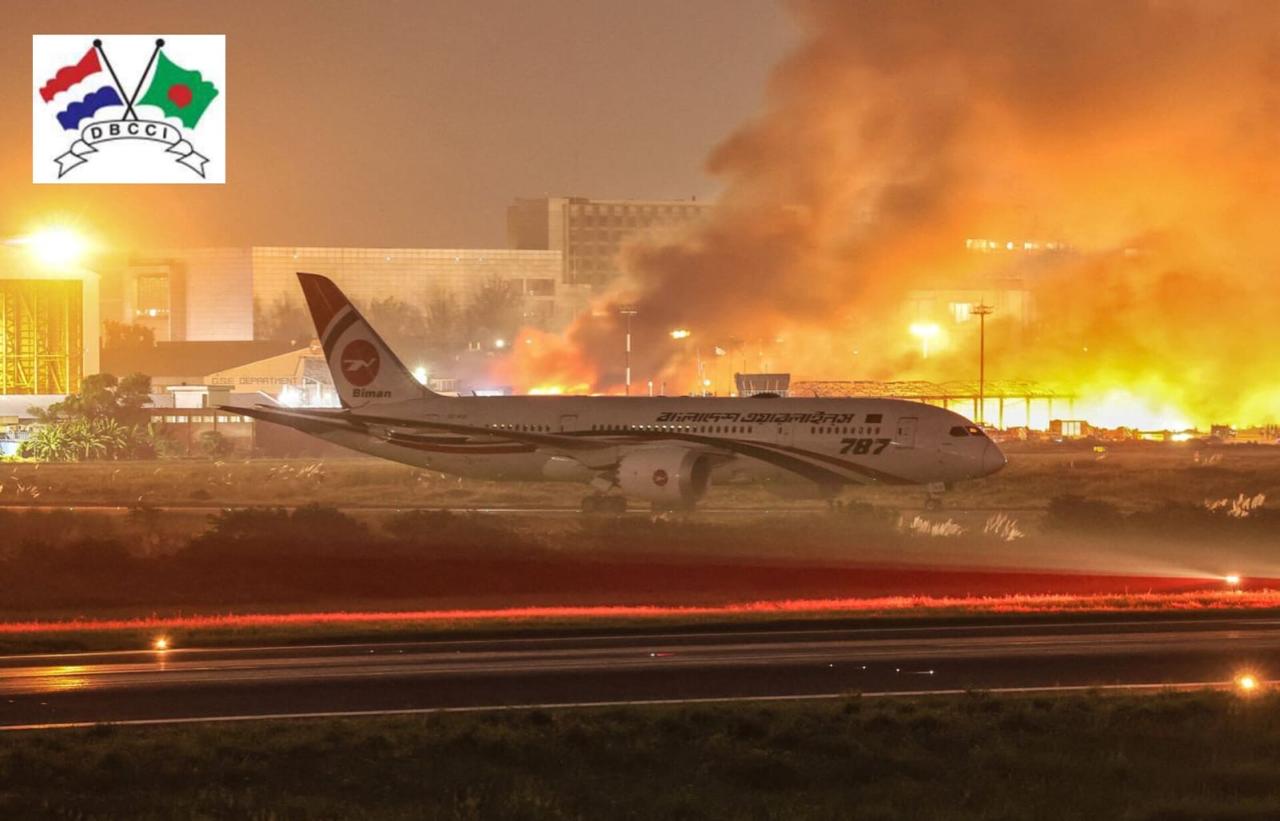 ১৮ অক্টোবর ২০২৫ তারিখে ঢাকার হযরত শাহজালাল আন্তর্জাতিক বিমানবন্দরের কার্গো টার্মিনালে সংঘটিত ভয়াবহ অগ্নিকাণ্ডে ডাচ বাংলা চোম্বার এন্ড কমার্স (ডিবিসিসিআই) গভীর উদ্বেগ প্রকাশ করছে। এ ঘটনায় যারা আহত হয়েছেন বা ক্ষতিগ্রস্ত হয়েছেন, তাদের প্রতি ডাচ-বাংলা চেম্বার অব কমার্স অ্যান্ড ইন্ডাস্ট্রি (DBCCI)-এর পক্ষ থেকে আন্তরিক সমবেদনা। এই দুর্ঘটনা শুধু মানুষ বা অবকাঠামোর ক্ষতি নয়—এটি দেশের আমদানি-রপ্তানি, সরবরাহব্যবস্থা ও সামগ্রিক বাণিজ্যচক্রে এক তাৎক্ষণিক ধাক্কা সৃষ্টি করেছে।