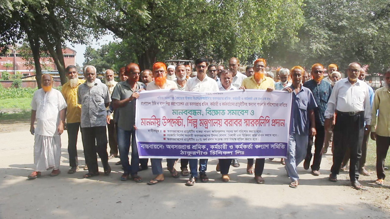 এর আগে তারা বিক্ষোভ কর্মসুচি পালন করেন। কর্মসুচি পালন শেষে মিলের ব্যবস্থাপনা পরিচালক মো. শাহজাহান কবিরের মাধ্যমে প্রধান উপদেষ্টা ও শিল্প মন্ত্রণালয় বরাবরে স্মারকলিপি প্রদানের জন্য দাবিসমুহ কাগজপত্র তুলে দেন।