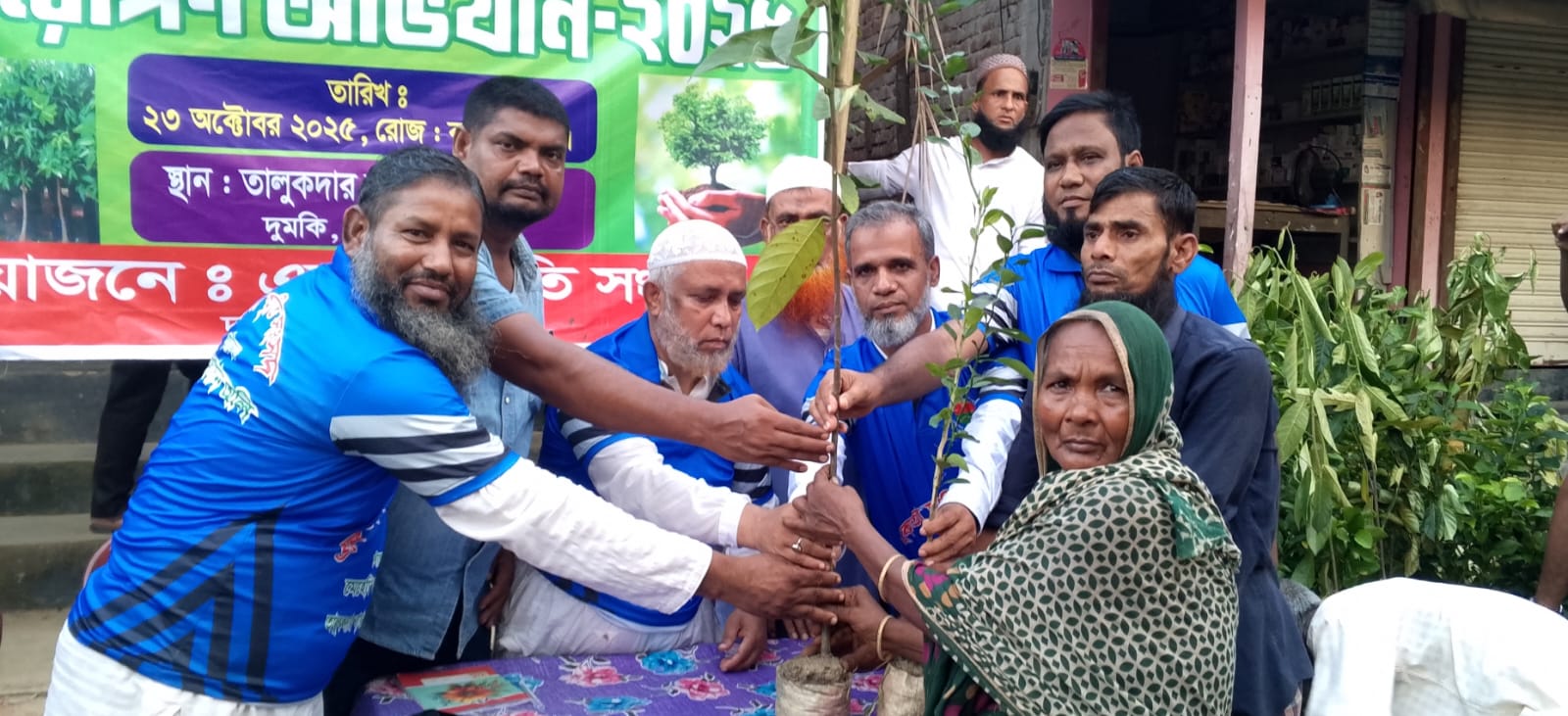 অনুষ্ঠানে শতাধিক অসহায় গরীবের মধ্যে আম,কাঠাল, লিচু ও লেবু চারা বিতরণ করা হয়।
