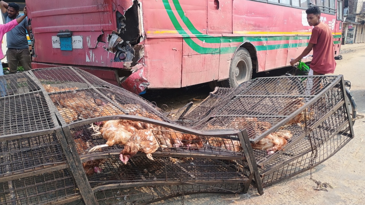 ট্রাক-বাস সংঘর্ষে ৩৫০ মুরগির মৃত্যু