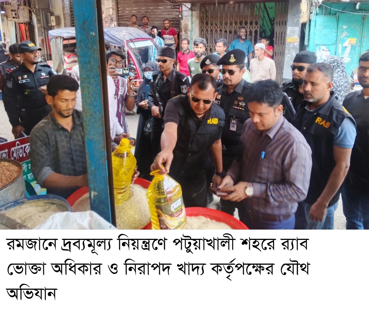 রমজানে দ্রব্যমূল্য নিয়ন্ত্রণে পটুয়াখালী শহরে র‌্যাব ভোক্তা অধিকার ও নিরাপদ খাদ্য কর্তৃপক্ষের যৌথ অভিযান