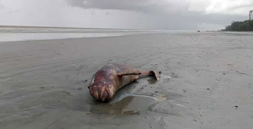 কুয়াকাটা সৈকতে ভেসে এলো মৃত ইরাবতী ডলফিন