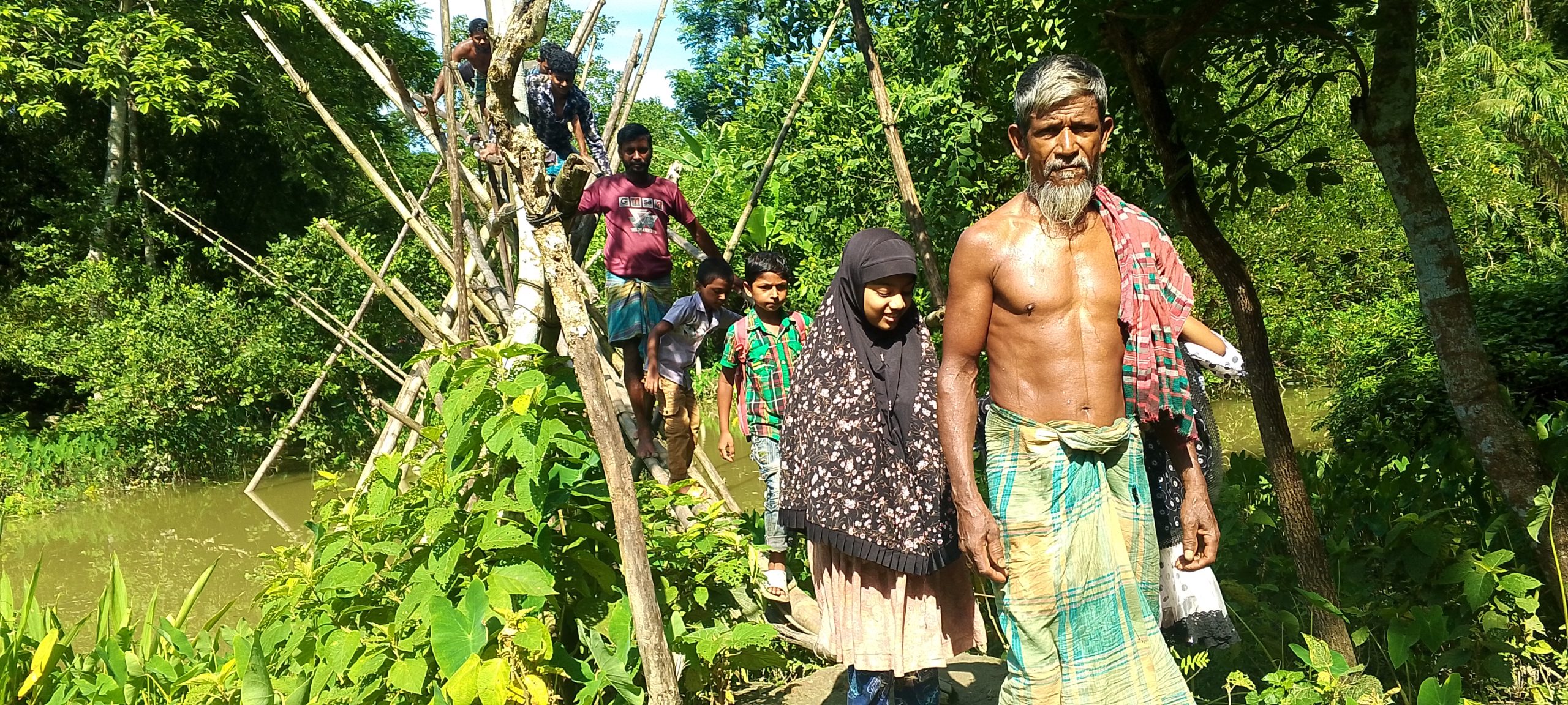 দুমকিতে স্কুলের সামনে নড়বড়ে বাঁশের সাঁকো- ভোগান্তিতে কোমলমতি শিক্ষার্থীরা