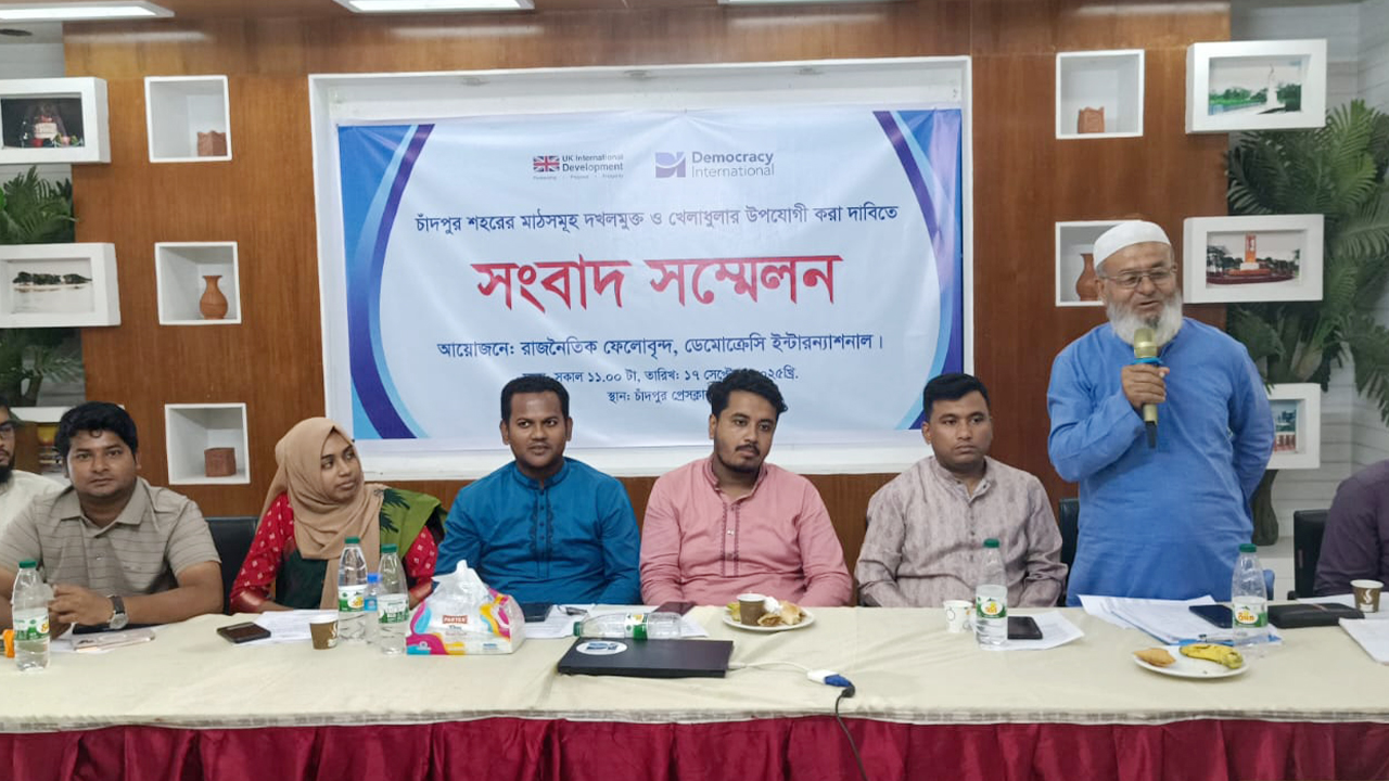 চাঁদপুর শহরের খেলার মাঠগুলো দখলমুক্ত ও খেলাধুলার উপযোগী করার দাবিতে সংবাদ সম্মেলন অনুষ্ঠিত হয়েছে। বুধবার (১৭ সেপ্টেম্বর) দুপুরে চাঁদপুর প্রেসক্লাবের