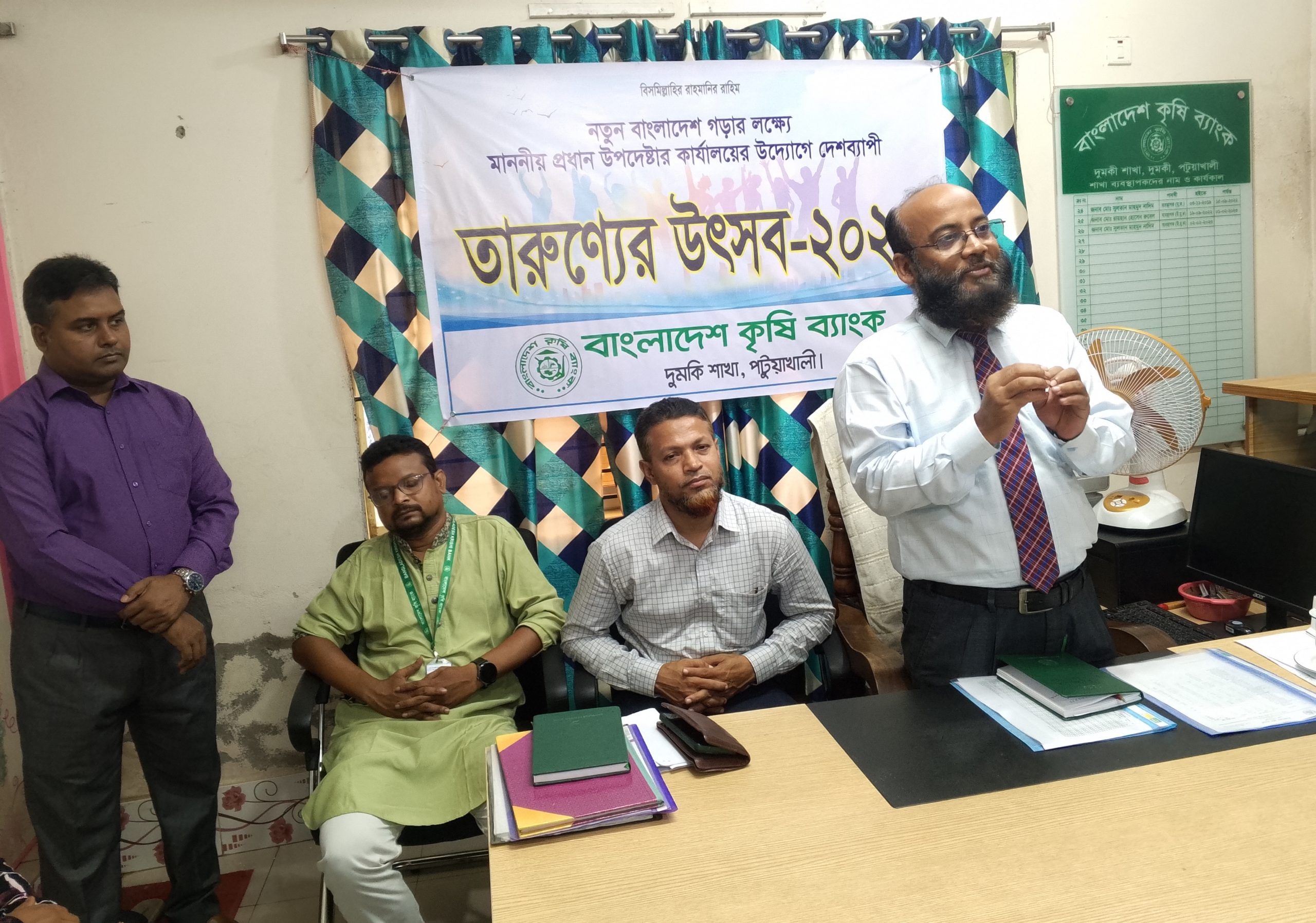 পটুয়াখালী প্রতিনিধি: নতুন বাংলাদেশ গড়ার লক্ষ্যে প্রধান উপদেষ্টার কার্যালয়ের উদ্যোগে দেশব্যাপী ” তারুণ্যের উৎসব -২০২৫ বাংলাদেশ কৃষি ব্যাংক দুমকি শাখার