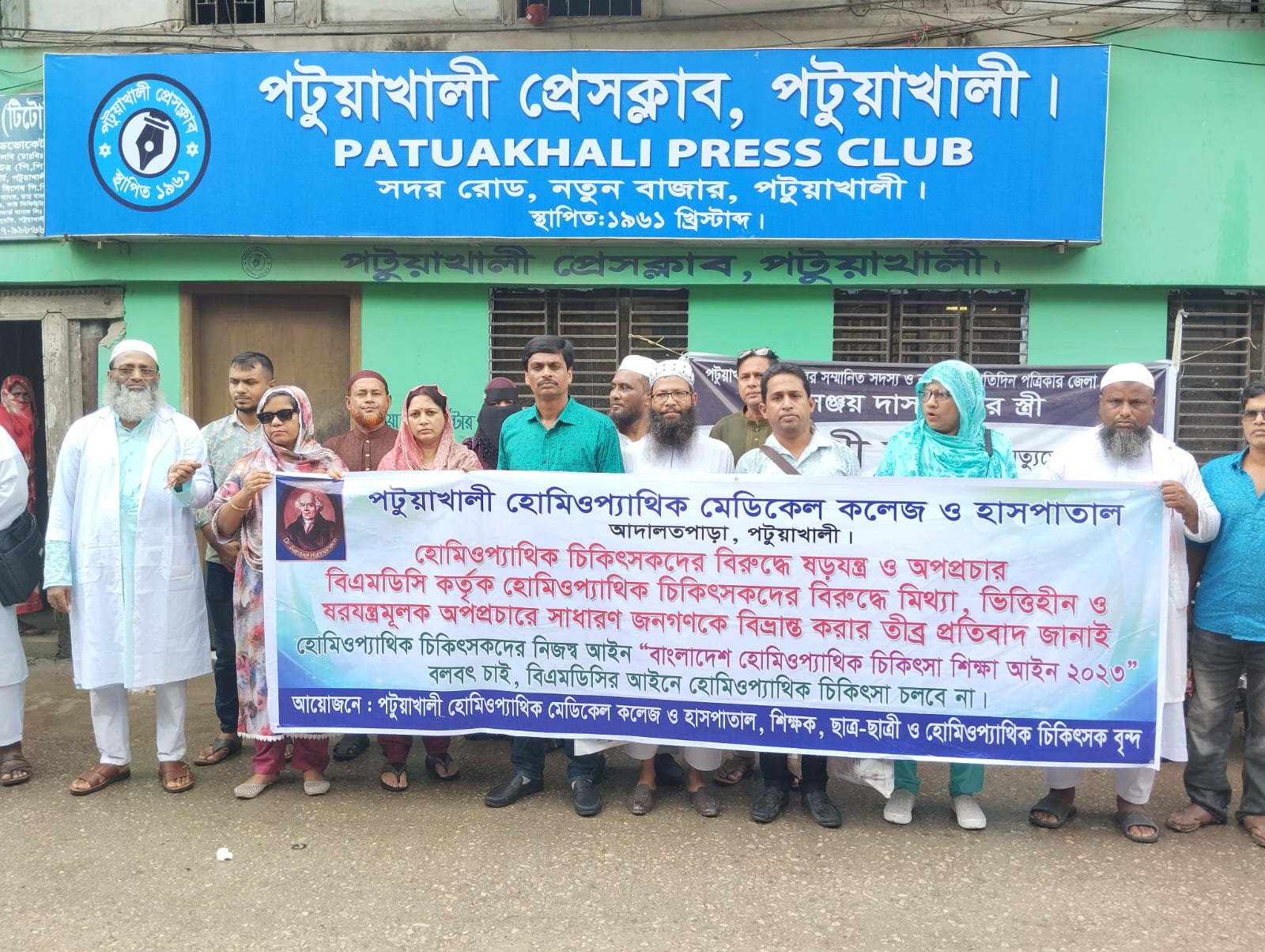 পটুয়াখালীতে ১০ দফা দাবি আদায়ে হোমিওপ্যাথি চিকিৎসকদের মানববন্ধন