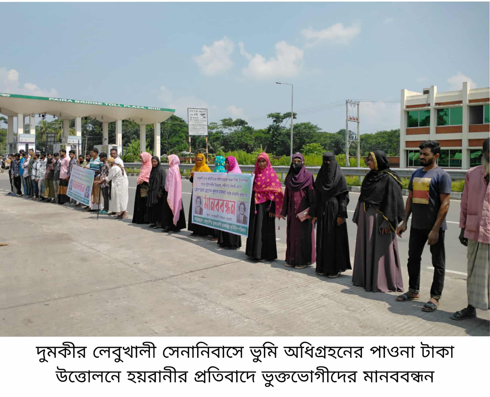 পটুয়াখালী প্রতিনিধিঃ পটুয়াখালীর দুমকিতে লেবুখালী সেনানিবাসের জন্য অধিগ্রহণকৃত জমির ক্ষতিপূরণের টাকা তুলতে গিয়ে হয়রানির শিকার হওয়ার অভিযোগ তুলে মানববন্ধন করেছেন
