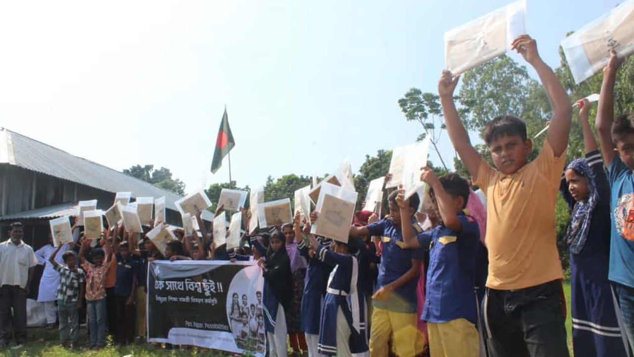 চরাঞ্চলে শতাধিক শিশুকে শিক্ষাসামগ্রী দিলো কাগজবাড়ি