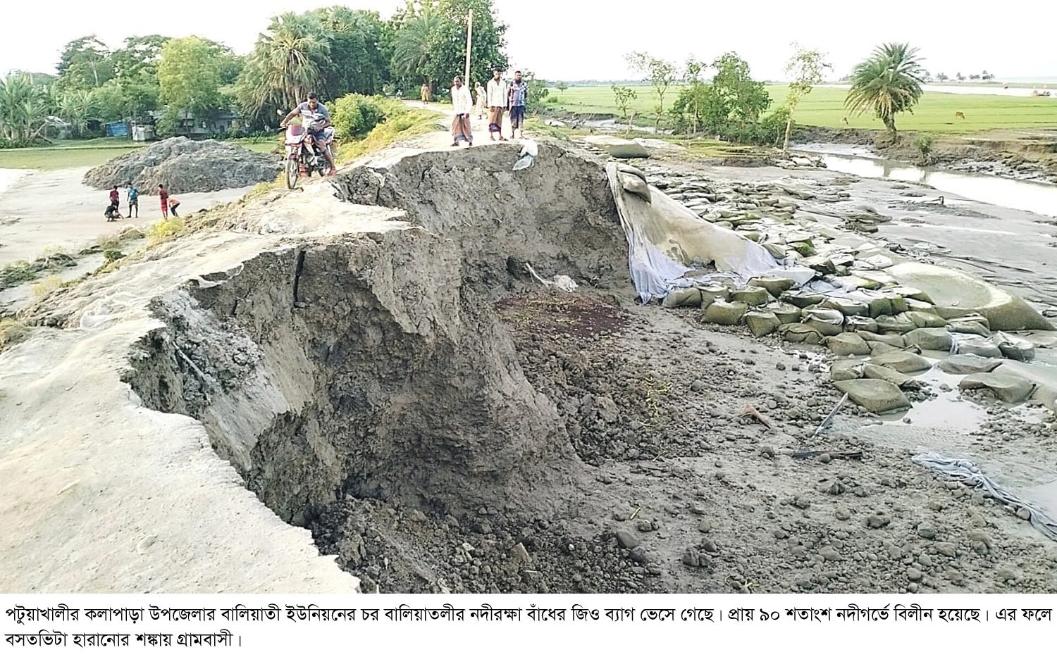 কলাপাড়ায় ভাঙছে নদীর তীরভূমি, বিলীন হচ্ছে নদী রক্ষা বাঁধ