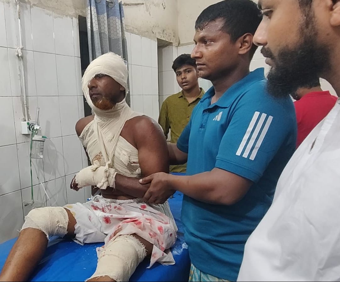 বাউফলে নির্মাণ কাজের বালু সড়কে থাকায় সিএনজি উল্টে গুরুতর আহত ৪
