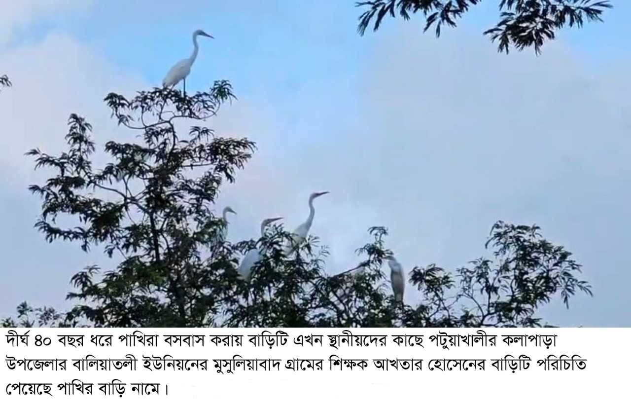 পটুয়াখালী প্রতিনিধি : দীর্ঘ ৪০ বছর ধরে পাখিরা বসবাস করায় বাড়িটি এখন স্থানীয়দের কাছে শিক্ষক আখতার হোসেনের বাড়িটি পরিচিতি পেয়েছে