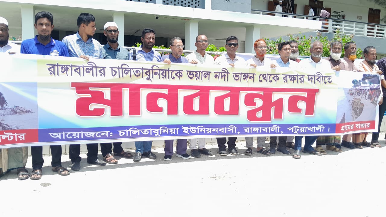 চালিতাবুনিয়া ইউনিয়ন আগুনমুখা নদী ভাঙনে বিলীন হচ্ছে বসত-বাড়ি ফসলী খেত, ভাঙন রোধে পটুয়াখালীতে মানববন্ধন