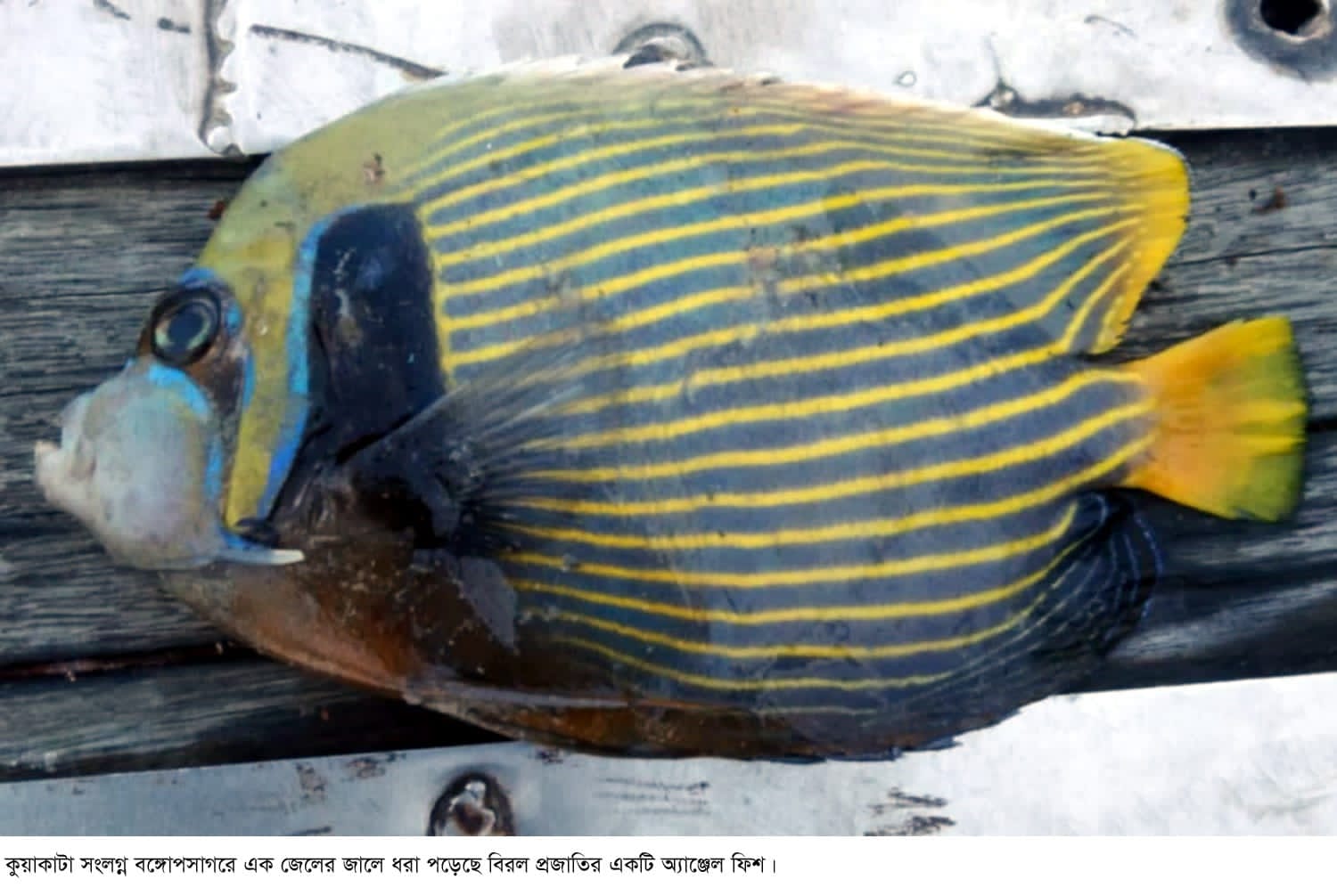 কুয়াকাটা সংলগ্ন সাগরে জেলেদের জালে ধরা পড়েছে বিরল প্রজাতির অ্যাঞ্জেল ফিশ